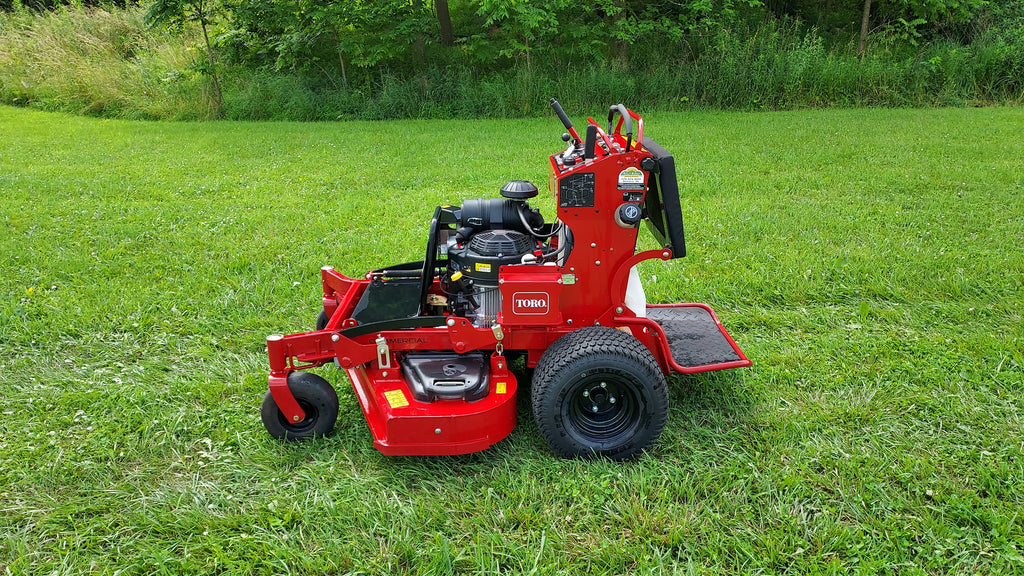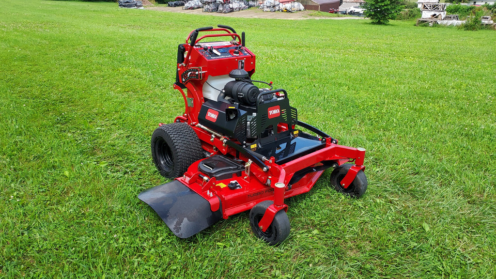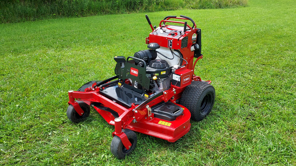 Rough bumps and challenging terrain are all in a day’s work. Feeling them shouldn’t have to be. The Toro GrandStand combines the speed and comfort of a zero-turn rider with the on-and-off ease of a wide area walk-behind — creating a fast, maneuverable and more productive alternative. And now the GrandStand is even better with all-new next generation upgrades that add up to higher productivity, lower maintenance and easier service. This mower has a 22 hp Kawasaki FX 726cc engine.